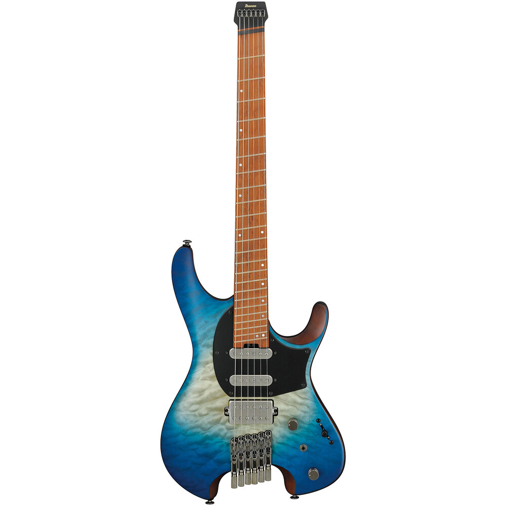 La Ibanez QUEST QX54QM-BSM es una guitarra eléctrica de gama media que combina un diseño moderno con componentes de alto rendimiento, ideal para guitarristas que buscan versatilidad y estilo. Su cuerpo de álamo con atractivo acabado Blue Steel Metallic (BSM) ofrece un equilibrio tonal cálido y resonante, mientras que el mástil de arce con perfil «C» y diapasón de palisandro con 24 trastes jumbo facilita la ejecución rápida y cómoda en todo el mástil.